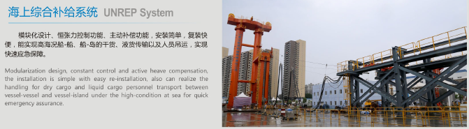 模塊化設(shè)計(jì)、恒張力控制功能、主動(dòng)補(bǔ)償功能、安裝簡(jiǎn)單、復(fù)裝快便,能實(shí)現(xiàn)高海況船-船、船-島的干貨、液貨傳輸以及人員吊運(yùn),實(shí)現(xiàn)快速應(yīng)急保障。