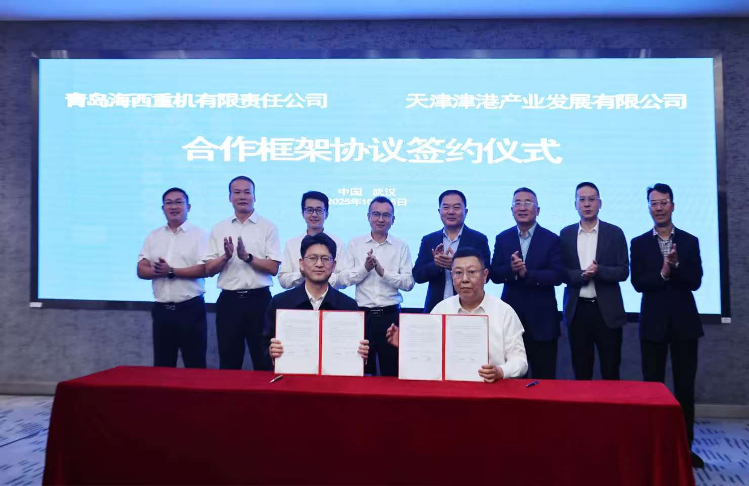隨后,青島海西重機有限責任公司與天津津港產(chǎn)業(yè)發(fā)展有限公司簽署合作框架協(xié)議。根據(jù)協(xié)議內(nèi)容,雙方將充分發(fā)揮各自在技術研發(fā)、生產(chǎn)制造和市場開拓等方面優(yōu)勢資源,重點聚焦港口機械設備制造、海洋工程裝備研發(fā)以及智能化信息系統(tǒng)推廣應用等核心領域開展全方位合作,同時將天津港“三型”港口建設成功經(jīng)驗推廣應用到國內(nèi)外,實現(xiàn)共贏發(fā)展。